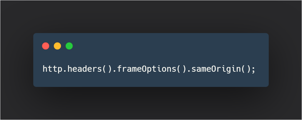 이 옵션을 추가해주면 iframe 문제가 발생하지 않을겁니다. 여기까지 끝내시면 h2 데이터베이스를 이용하시는 분들도 정상적으로 조회가 가능할 겁니다. 추가로 http옵션은 다 한 줄로 길게 늘여서 쓸 수 있습니다.