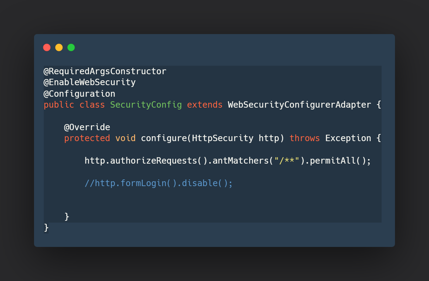 우리를 괴롭히는 로그인 페이지를 사용하지 않을거라면 위 두 가지 방식으로 제어할 수 있습니다. 첫 번째는 모든 요청에 대해서 권한을 허용하는 방법이고 두 번째는 로그인 form만 꺼버리는 방식입니다.