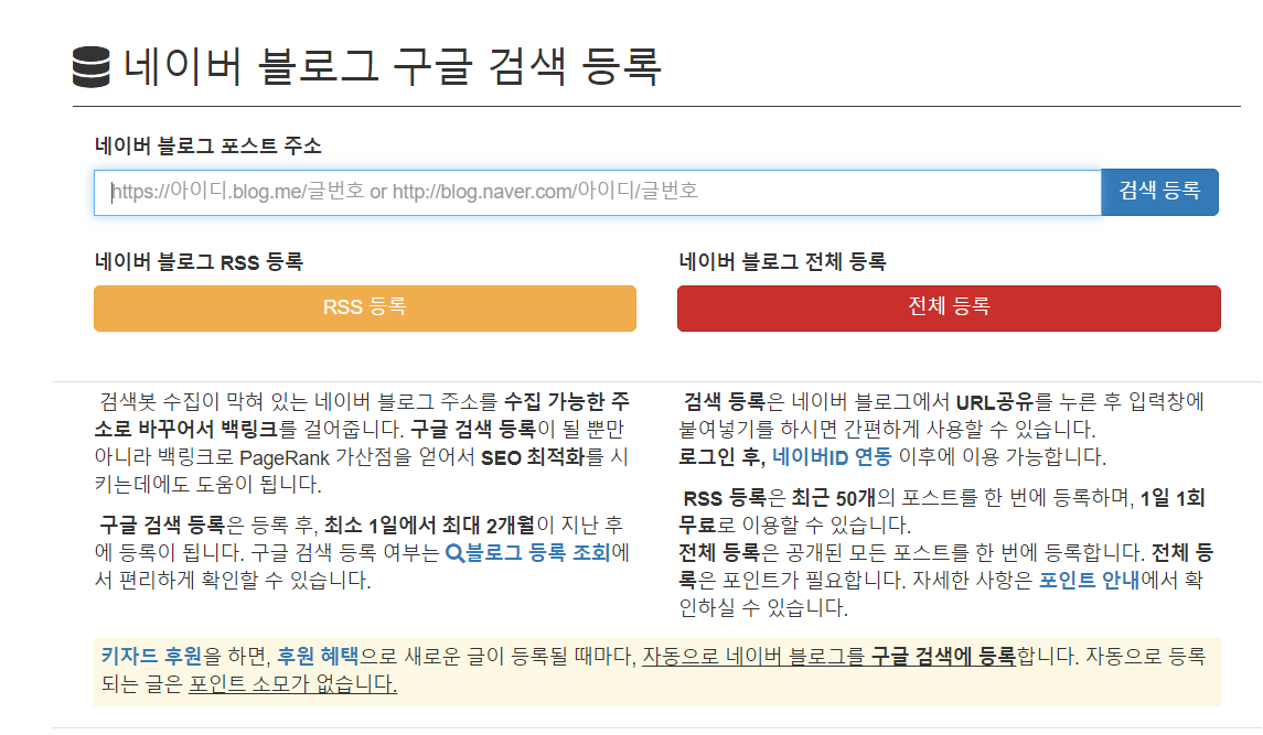 '네이버 블로그 - 구글 검색 등록'으로 가보시면 위와 같은 페이지가 떠요