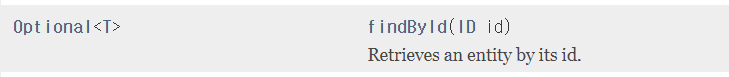 findById는 JpaRepository에서 기본으로 제공합니다. id값을 기준으로 entity에서 값을 찾고, 만약에 값이 있다면 그대로 return을 하고 값이 없다면 예외 처리를 해줍니다.