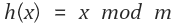 나누기 방법의 해쉬 함수의 식은 다음과 같다.