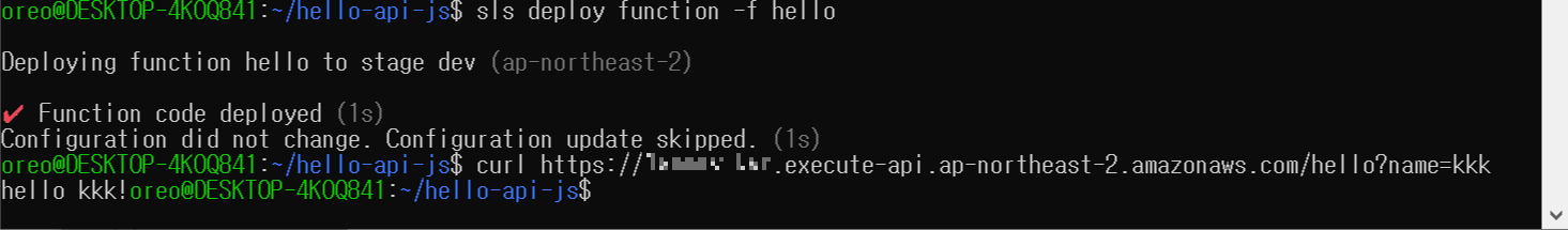Deploying hello-api-js to stage dev (ap-northeast-2)