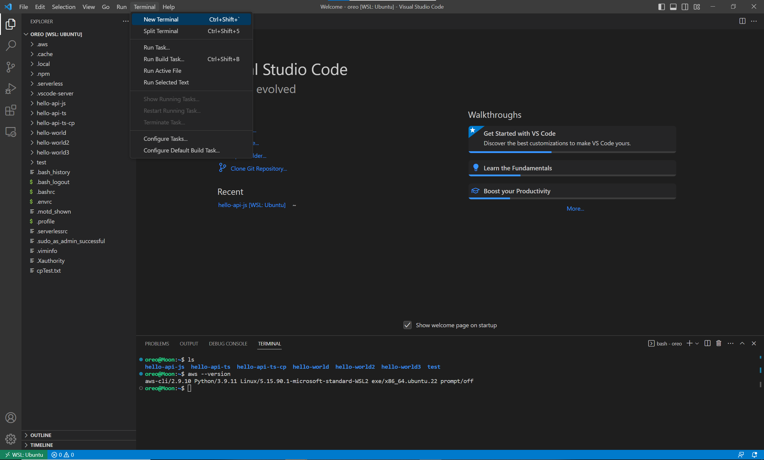 Terminal 기능을 이용해서 bash 명령어도 입력할 수 있습니다. 저는 이거 몰라서 Linux 잠깐 만졌다가 최소화 하고 vs code 작업하고 그랬는데.. Terminal 기능이 있으니 vs code에서 모든 작업이 가능하게 되었어요!!