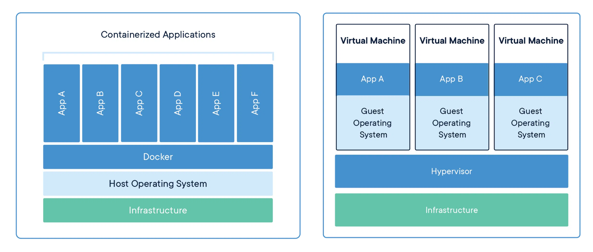 가상 머신: 가상 머신은 완전한 운영 체제를 가상화하므로 더 많은 리소스를 필요로 합니다. 따라서 가상 머신은 더 무거우며 시작과 종료에 시간이 더 소요됩니다.