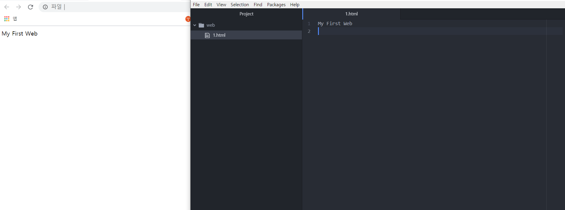 그리고 해당 파일을 브라우저에서 열면 제가 작성한 문장이 그대로 나타납니다.
