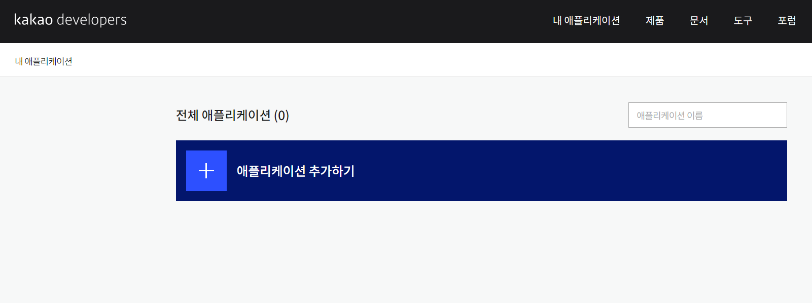 상단 메뉴의 내 애플리케이션을 눌러주세요.