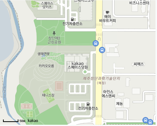 500x400 크기의 지도가 제주도에 위치한 카카오를 중심으로 나오네요.