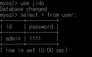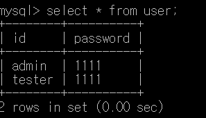 그래서 user 테이블이 id와 password 이 두 속성만 가지고 있습니다.