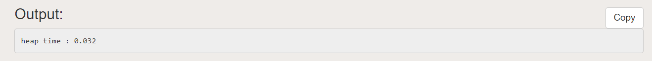 0.032초로 복잡한 정렬 알고리즘들 중에서는 느린 편에 속한다.