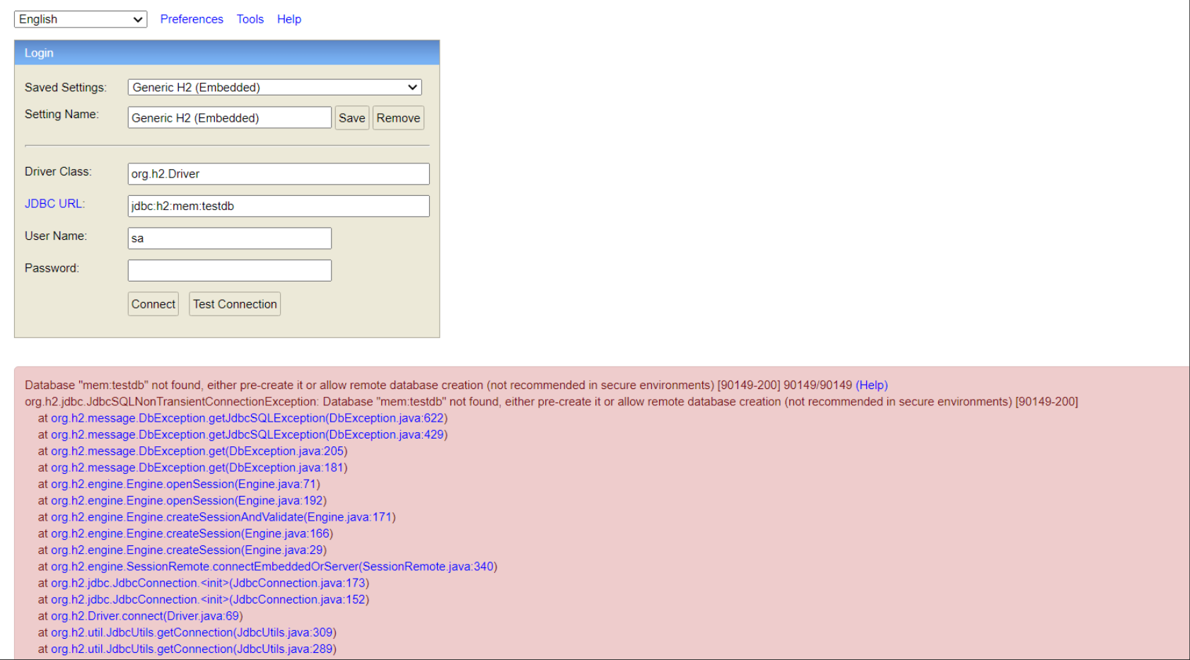 spring boot gradle에 h2 dependency를 추가하고 웹으로 db 콘솔 접근할 때 오류가 발생했습니다.