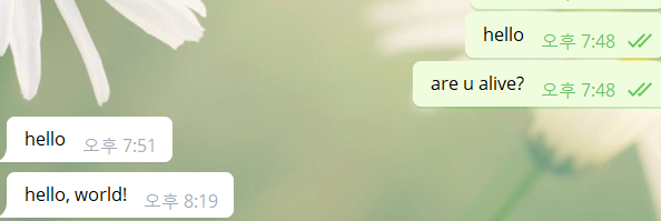 어쨋든 여기까지 진행하신다면 bot이 제대로 메시지를 전송하게 됩니다.