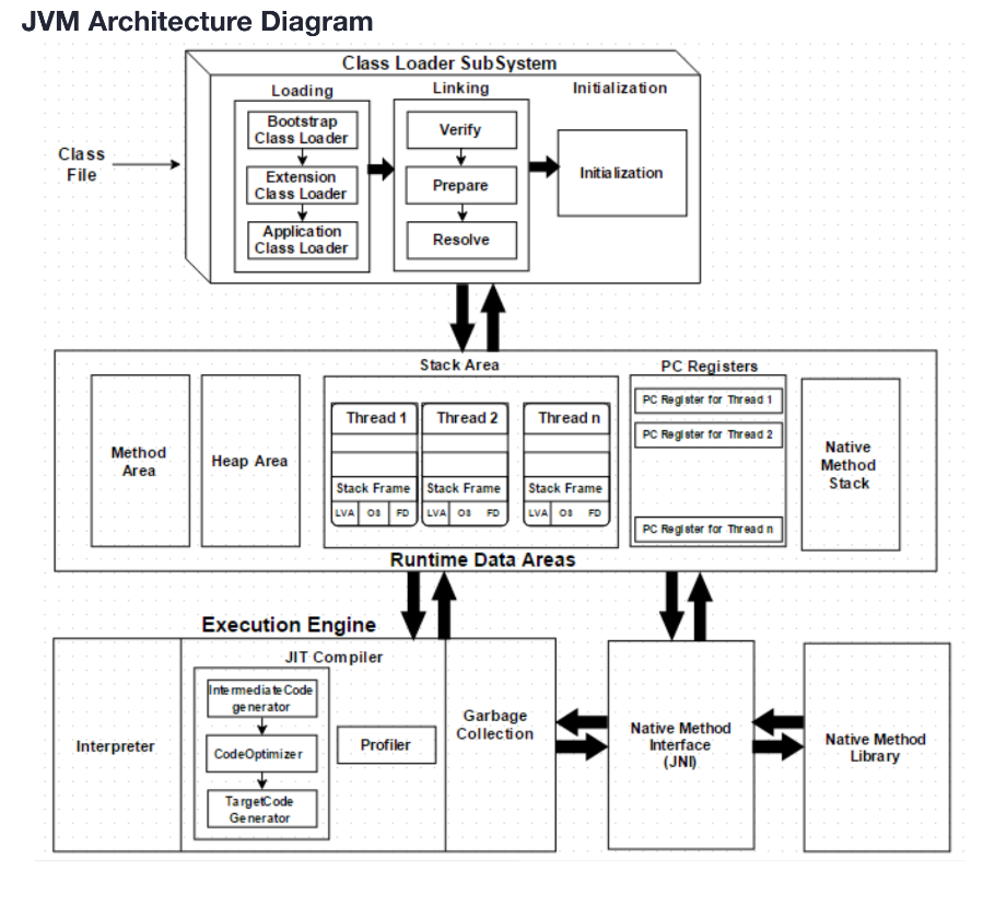 JIT 컴파일러는 JVM의 Execution Engine 파트에 속해있습니다. 예전 자바는 인터프리터 방식만을 사용했다고 합니다. 인터프리터의 경우 명령어를 하나씩 실행하는 방식으로 각각의 명령어 단위로 본다면 실행 속도가 빠르지만 큰 덩어리로 본다면 속도가 느린 방식입니다. 중복되는 코드가 있어도 라인별로 실행하기에 다시 인터프리팅하는 과정이 들어가거든요.