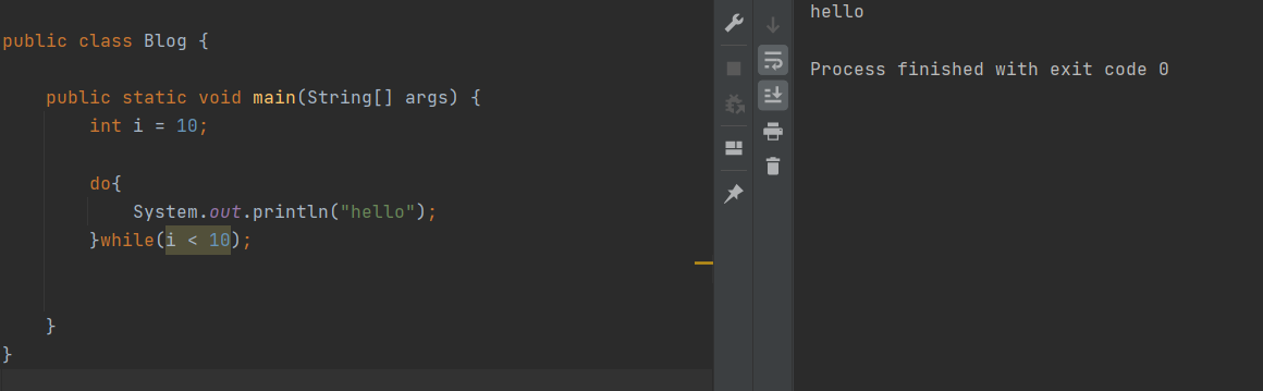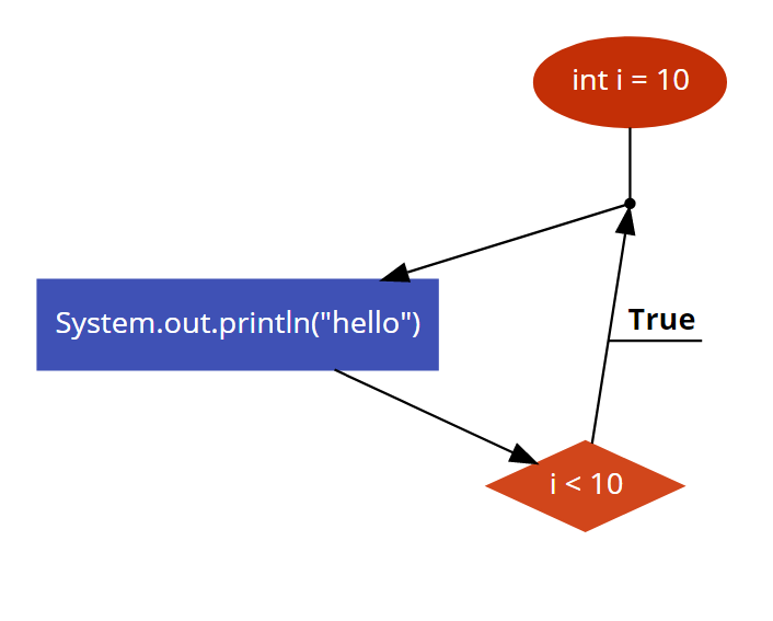 자.. 모든 프로그래밍 언어는 일반적으로 위에서부터 아래로 구문이 수행이 됩니다. 위와 같은 do-while문이라면 무조건 맨 처음 한 번은 구문이 수행되게 됩니다. 시작부터 조건식이 false더라도 항상이요. 그 외에는 똑같습니다. 조건식을 만난 뒤부터는 True일 때만 다시 수행될 구문으로 올라가서 반복합니다.